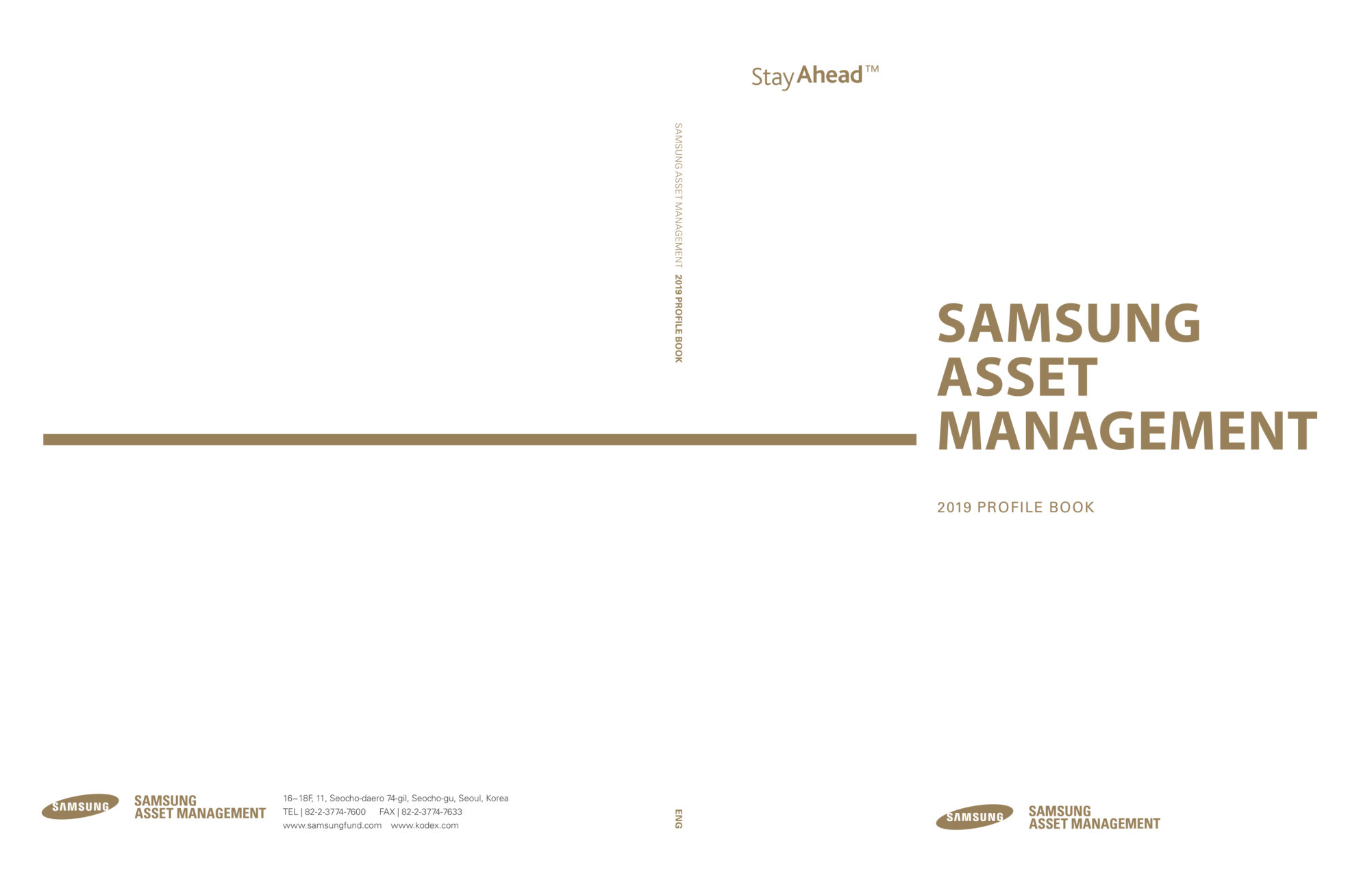 Entry Highlights: View Competition Class Performance | Company/Agency Name: | Samsung Asset Management  / Kudos-digm | | Company Web Site: | www.samsungfund.com | | Project Name: | "Samsung Asset Management 2019 Profile Book" | | Competition Category: | Report: Annual Report | | Annual Revenue: | $100 million – $1 billion | | Employee Base: | 100 – 1,000 employees | | Award Garnered: | Gold | | Top 100 Rank: | 56 | | | | Judging Results | | First Impression: | | | Overall Narrative: | | | Overall Visual Design: | | | Creativity: | | | Message Clarity: | | | Perceived Relevance: | | | Total Score: | |