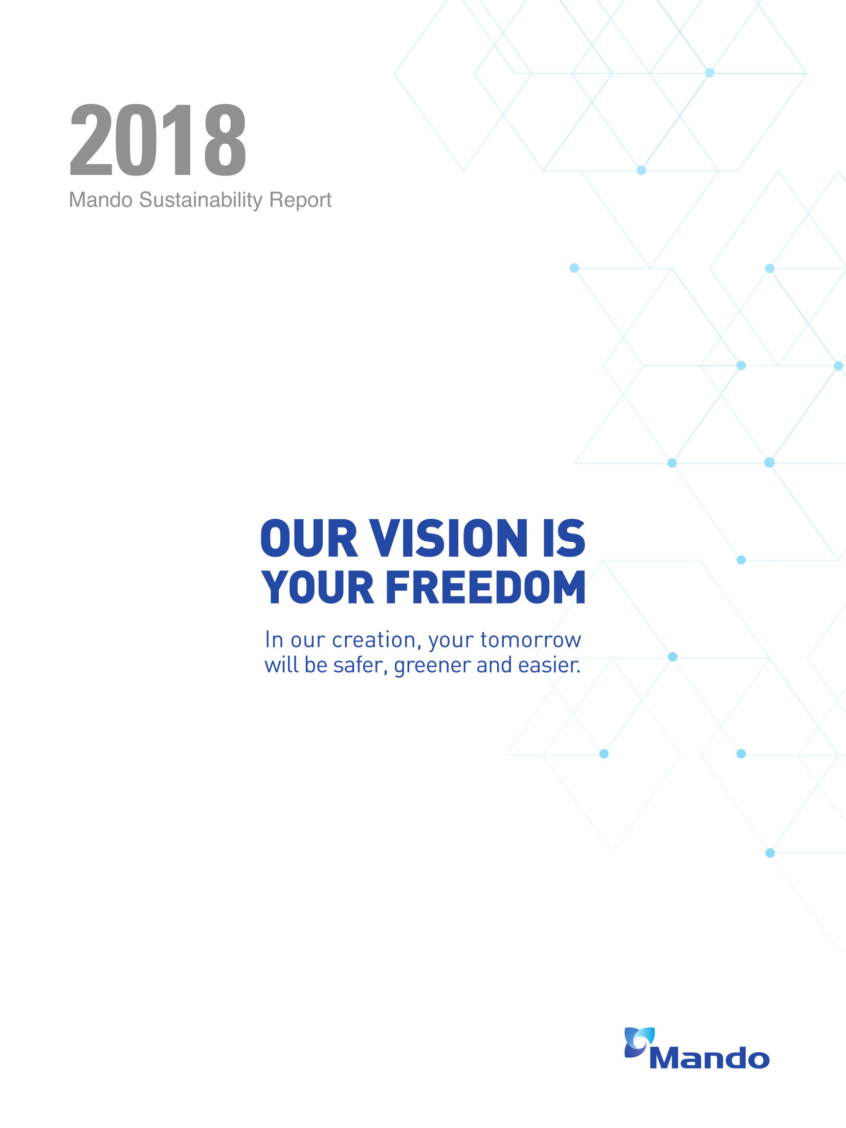 Entry Highlights: View Competition Class Performance | Company/Agency Name: | Mando Corporation  / THE CSR | | Company/Agency Web Site: | www.mando.com/ / thecsr-center.com/ | | Project Name: | 2018 Mando Sustainability Report | | Competition Category: | Report: Sustainability Report | | Annual Revenue: | $1 – $10 billion | | Employee Base: | 1,000 – 10,000 employees | | Award Garnered: | Silver | | Top 100 Rank: | 82 | | | | Judging Results | | First Impression: | | | Overall Narrative: | | | Overall Visual Design: | | | Creativity: | | | Message Clarity: | | | Perceived Relevance: | | | Total Score: | |