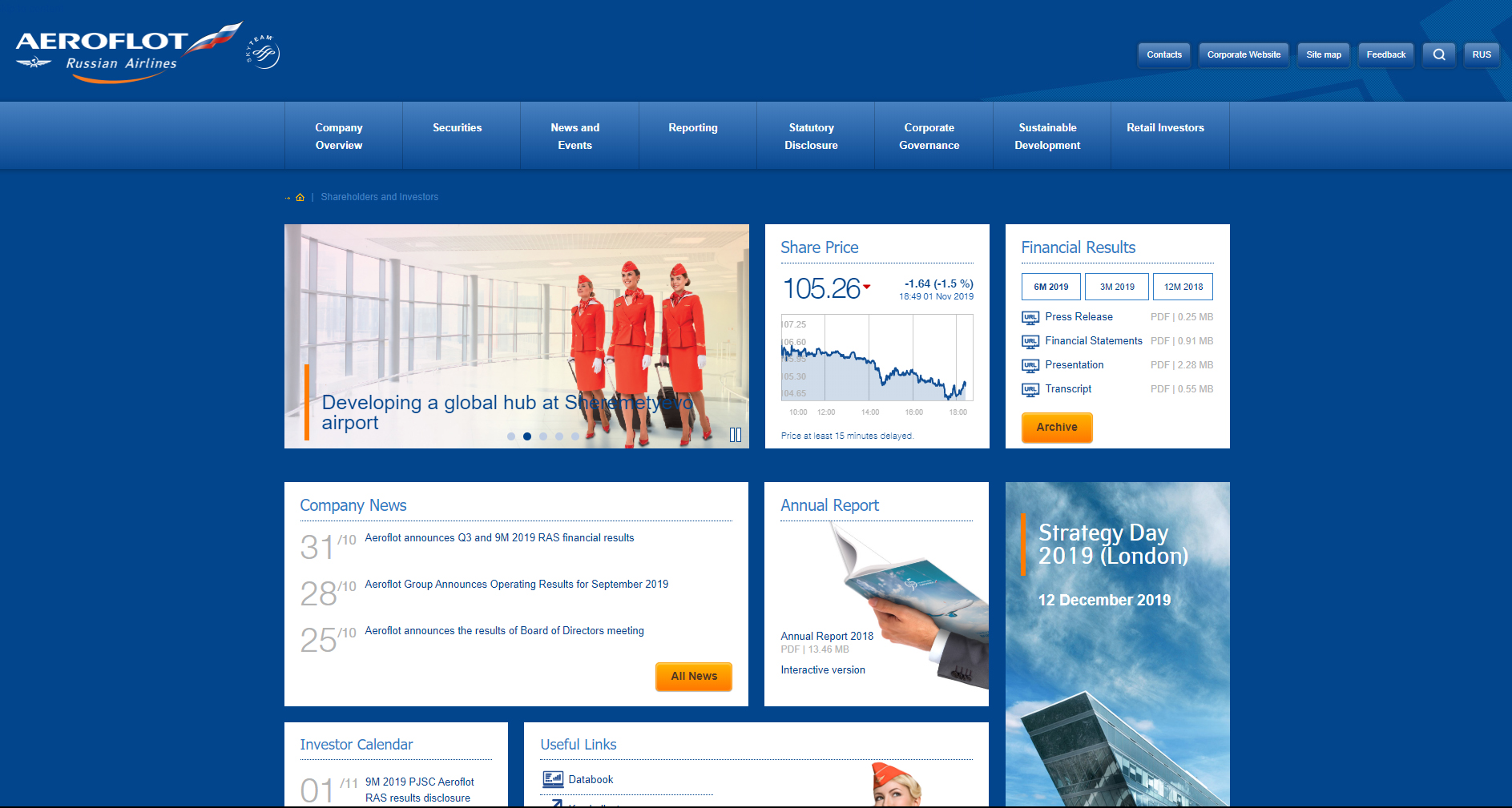 | | 2019 Spotlight Awards Global Communications Competition | PJSC Aeroflot EQS Group