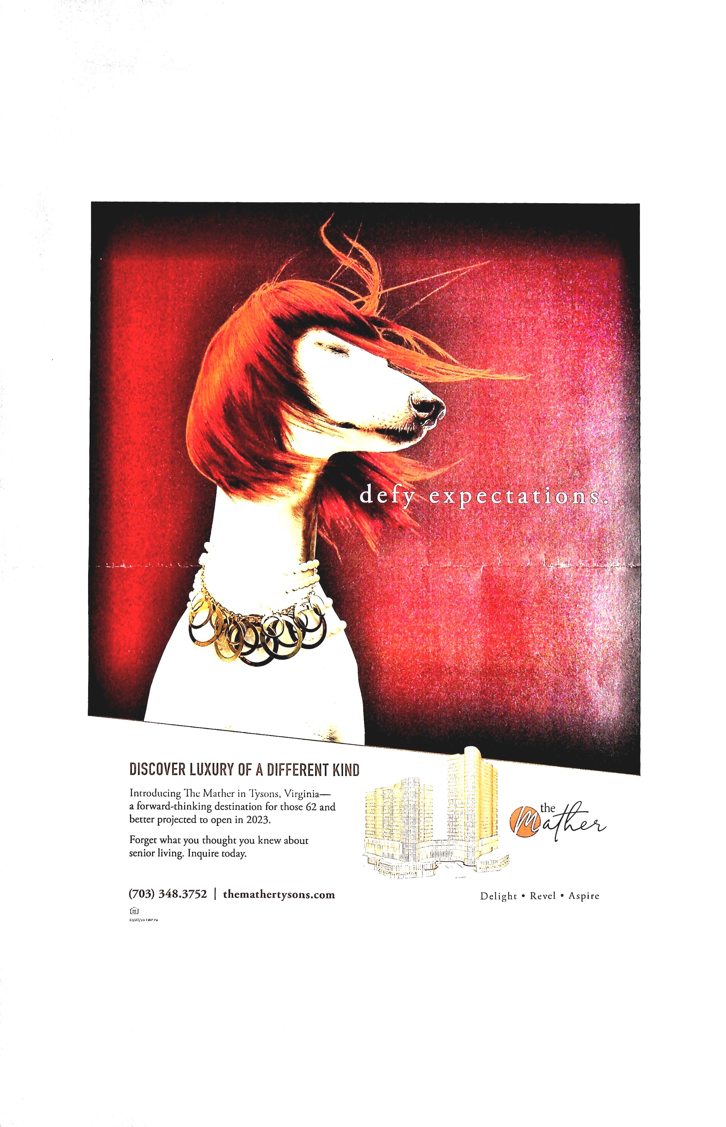 Entry Highlights: View Competition Class Performance | Company Name: | The Mather  | | Company Web Site: | www.themathertysons.com | | Project Name: | The Mather's "Luxury of a Different Kind" Ad Campaign | | Competition Category: | Print: Advertisement/Ad Series | | Annual Revenue: | $100 million – $1 billion | | Employee Base: | Up to 100 employees | | Award Garnered: | Silver | | Top 100 Rank: | 71 | | | | Judging Results | | First Impression: | | | Overall Narrative: | | | Overall Visual Design: | | | Creativity: | | | Message Clarity: | | | Perceived Relevance: | | | Total Score: | |