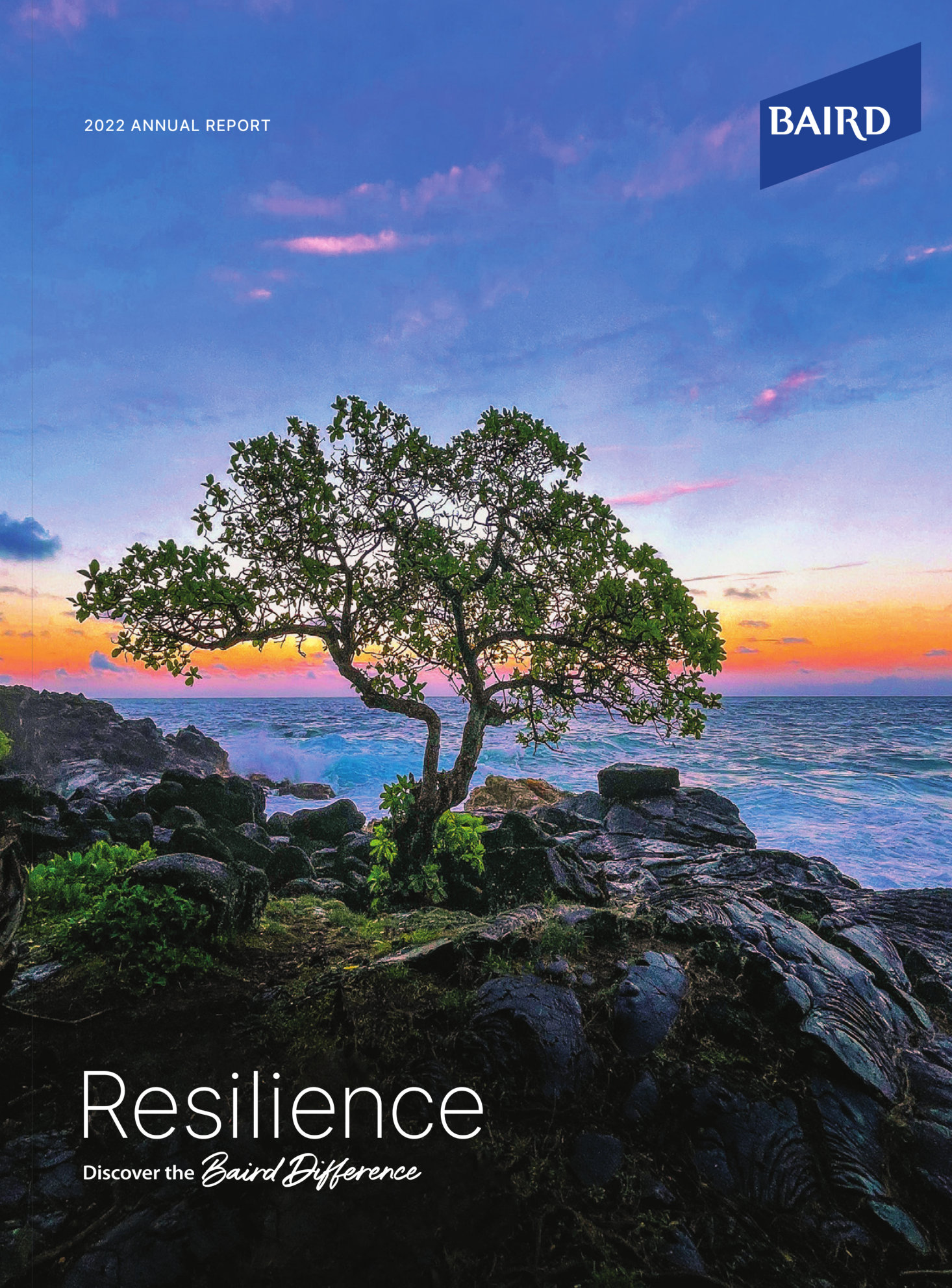 | Company/Agency Name: | Baird / CI Design | | Company/Agency Web Site: | www.rwbaird.com/ / cidesigninc.com/ | | Annual Revenue: | $1 - $10 billion | | Employee Base: | 1,000 - 10,000 employees | | Core Industry: | Financials - Diversified Services | | Type of Report: | Annual Report | | Title/Theme: | Discover the Baird Difference: Resilience | | Industry Award Garnered: | Silver | | | | Judging Results | | First Impression: | | | Report Cover: | | | Letter to Shareholders: | | | Report Narrative: | | | Report Financials: | | | Creativity: | | | Message Clarity: | | | Information Accessibility: | | | Total Score: | |